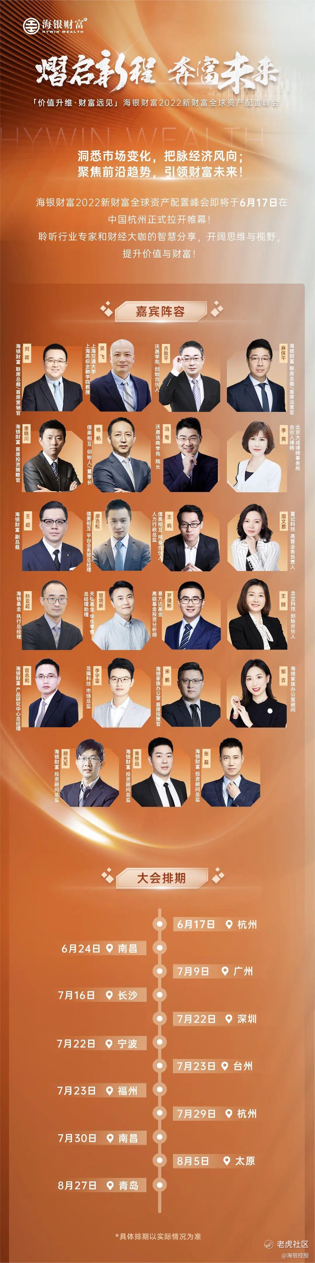 为在千变万化的市场环境中,寻找正确的财富智慧,找到适合自己的配置方案;也为基于海银财富“一主两副”战略深耕战略城市,回馈客户持续的信任。海银财富将联动十余城,从6月起,开启为期两个月的“价值升维 财富远见——海银财富2022新财富全球资产配置峰会”。