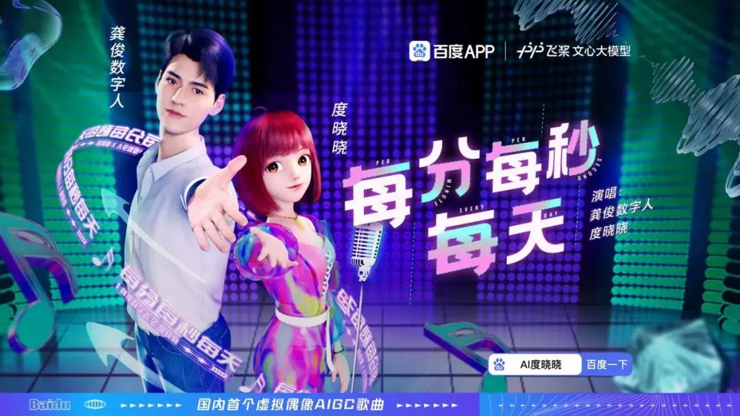 最近最出圈的“女劳模”,当属百度数字人度晓晓。她与龚俊数字人联合演唱的《每分 每秒 每天》歌曲MV刷屏全网。这是国内首个虚拟偶像AIGC歌曲,从作词到编曲均由AI“操刀”。