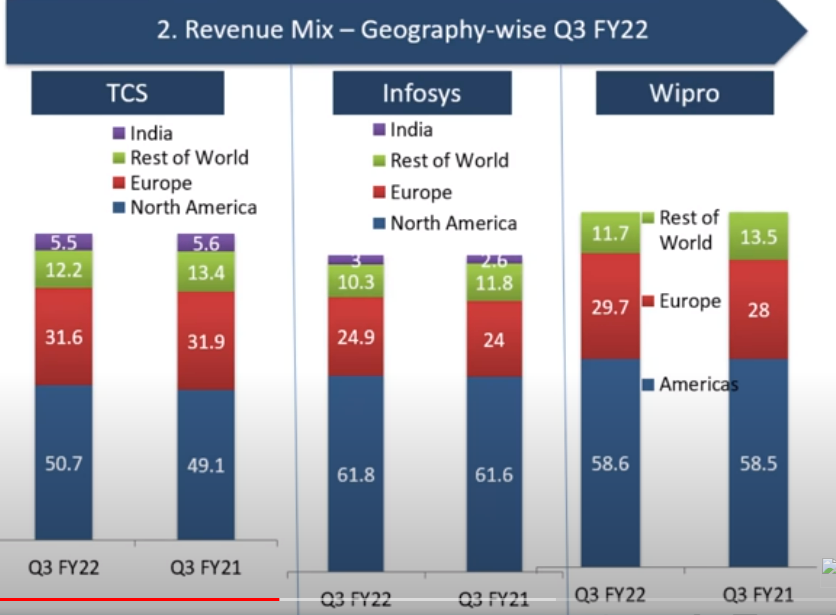 在与印度外包同行的收入结构对比上,infosys来自欧美发达地区的占比也是最高的。