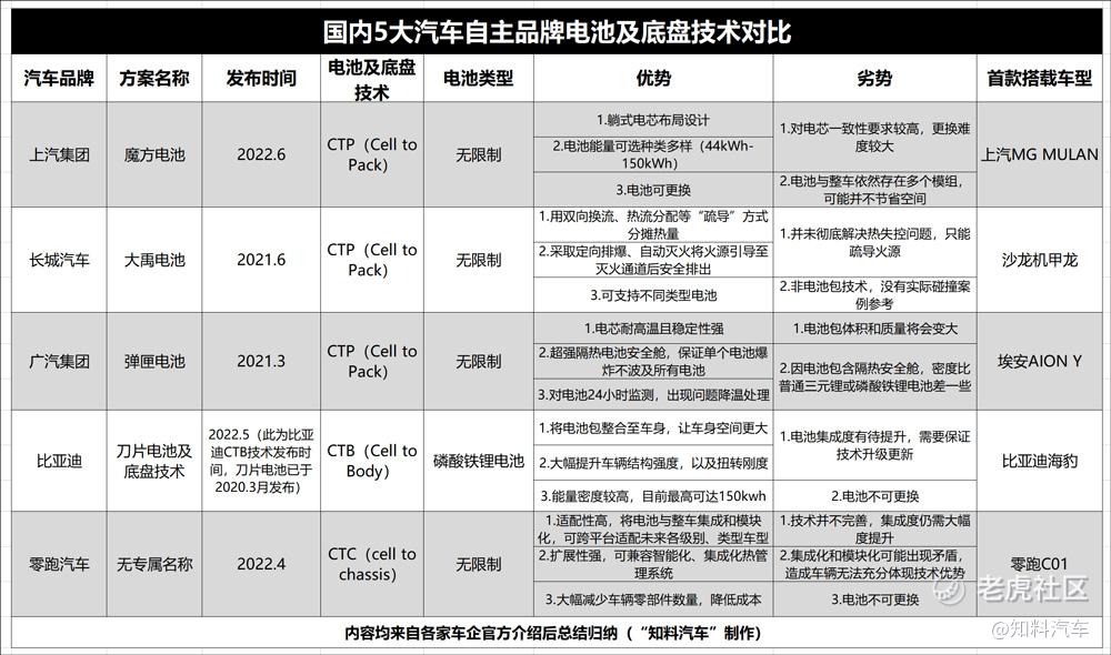 国内5大汽车自主品牌电池及底盘技术对比(“知料汽车”制作)