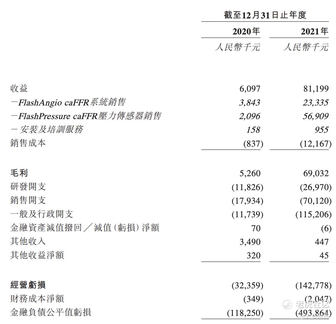 于往绩记录期间,润迈德医疗在2019年10月caFFR系统商业化后,才开始产生收益。截至2020年及2021年12月31日止年度,该公司分别录得收益(收入)人民币609.7万元、8119.9万元,分别产生净亏损(年内亏损)1.45亿元和6.34亿元。