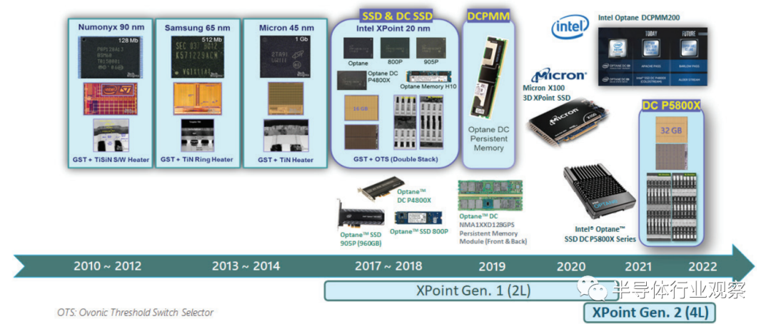 图 10. PCM/XPoint 历史显示 2L第一代和4L第二代英特尔的 XPoint 内存产品。