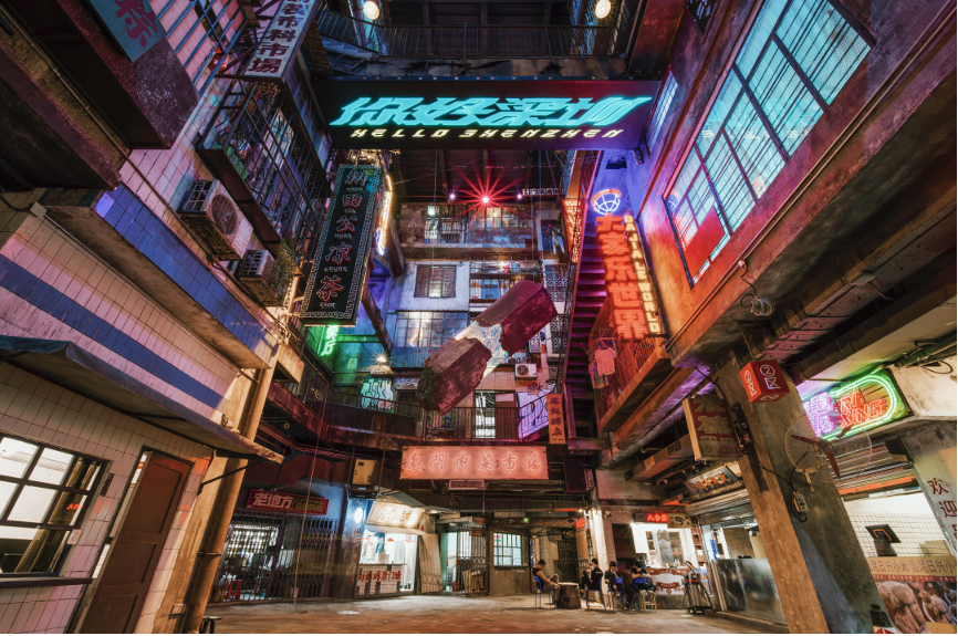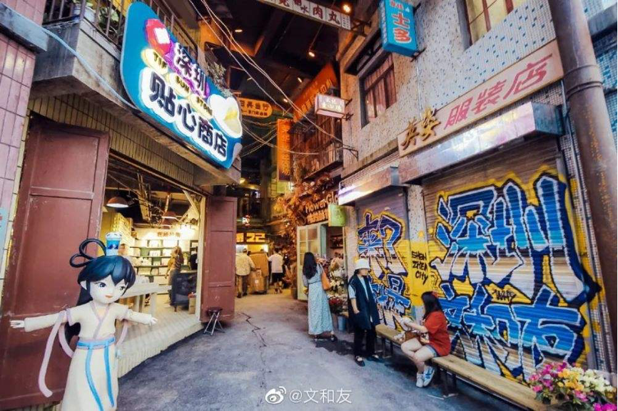 2021年4月,建筑面积达到2万平米的深圳文和友开业,建筑参照成龙主演的电影《追龙》里的九龙城寨造型——各色招牌密集挂满了街头,有四大天王的理发店,有儿时东门的街机游戏厅,80年代的怀旧照相馆、做旧的钢筋水泥楼梯……