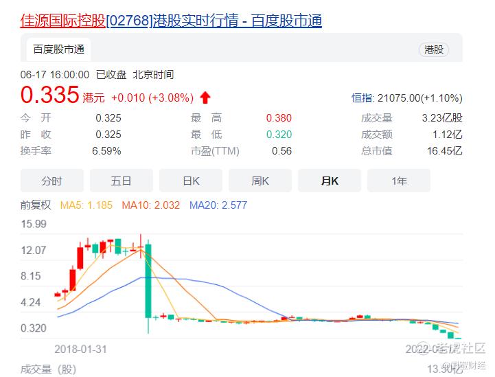 5月18日,佳源国际控股的股价闪崩,当天跌幅达41%,当月累积跌幅近76%。
