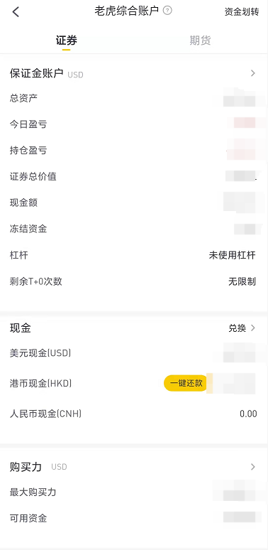 打开老虎app>【我的】>【老虎账户】>【证券账户】>【一键还款】,就能成功还款啦。使用融资功能对账户的影响