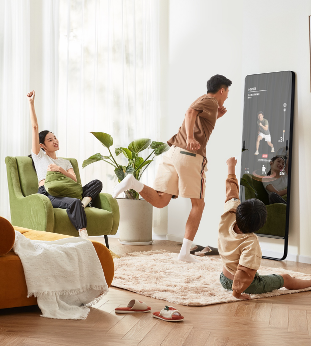 二是在健身镜内还内置了定格穿墙、飞机大战、管道飞鸟等体感游戏,目的是通过游戏来提升健身的快乐指数,吸引家庭用户参与,降低家庭健身门槛。