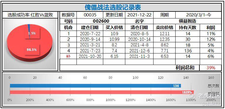 傀儡选股35:消费电子 领益智造002600 操作5次 成功率100