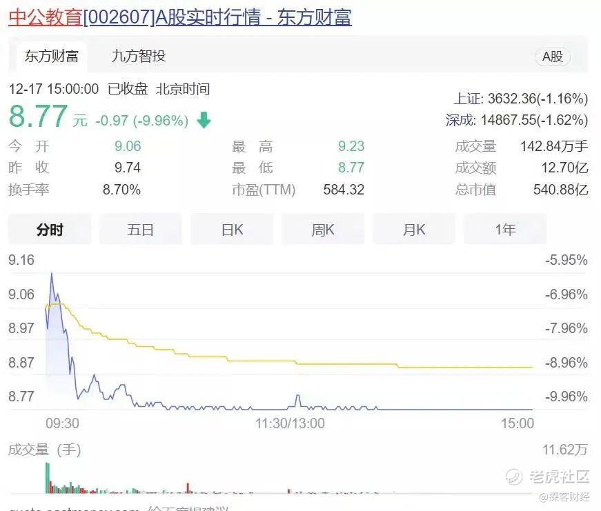 受证监会立案调查事件的影响,中公教育在12月17日跌停。
