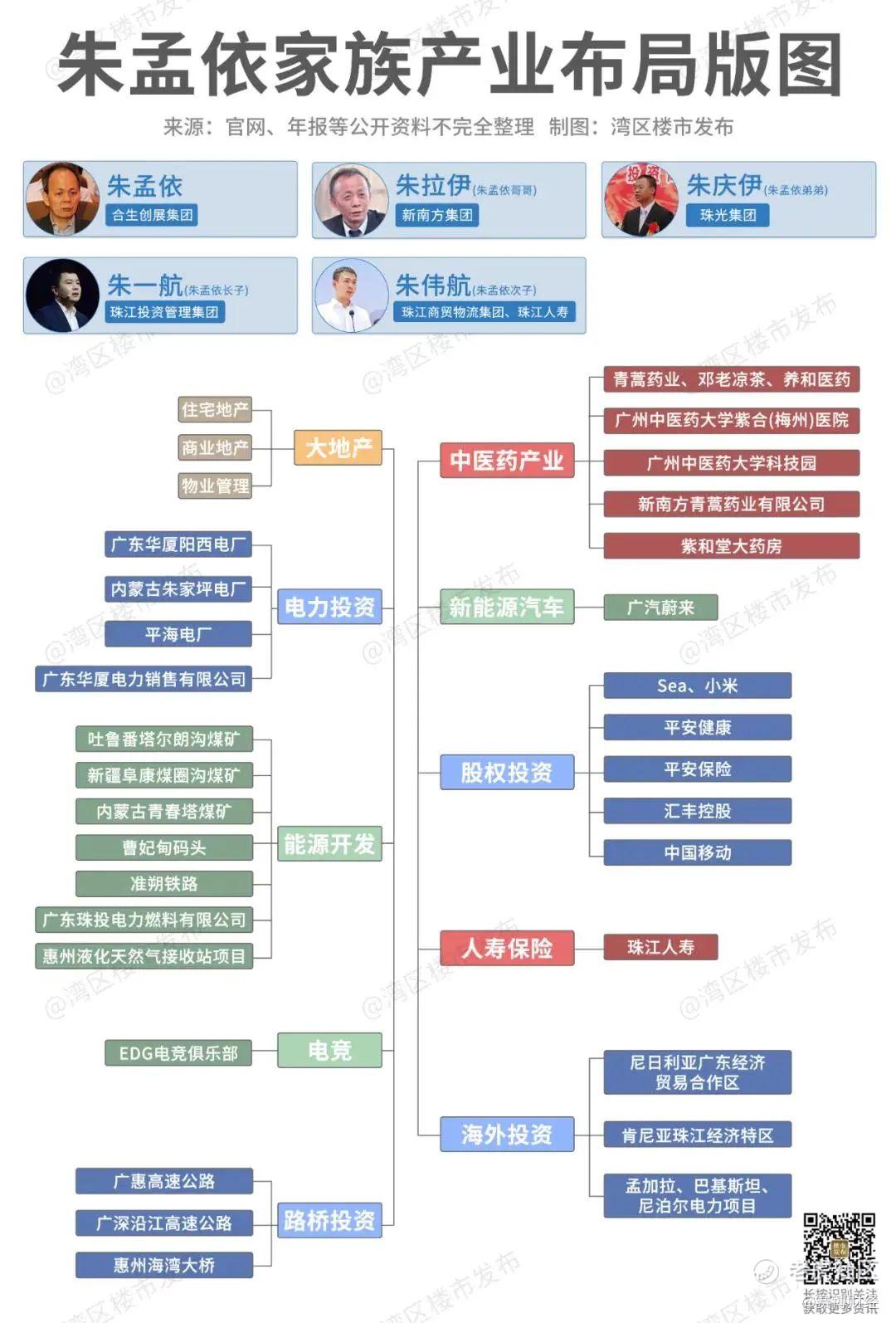 根据湾区楼市发布的梳理,朱氏家族目前至少布局了10大产业领域。