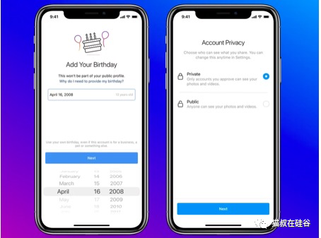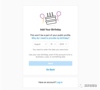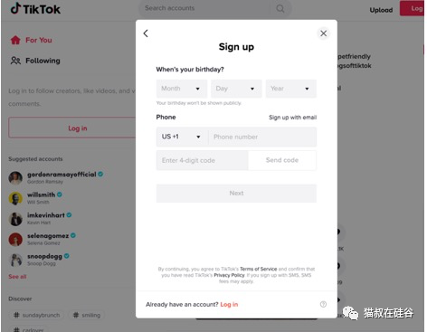 以TikTok举例,用户注册的时候可以使用Facebook、Twitter、谷歌或者苹果账号,单独注册时需要输入出生日期和手机号码(或邮箱),确认年满13岁才能注册。Instagram和Facebook注册新用户的时候,最后一步也需要输入生日。如果未满13岁,平台会直接拒绝注册。