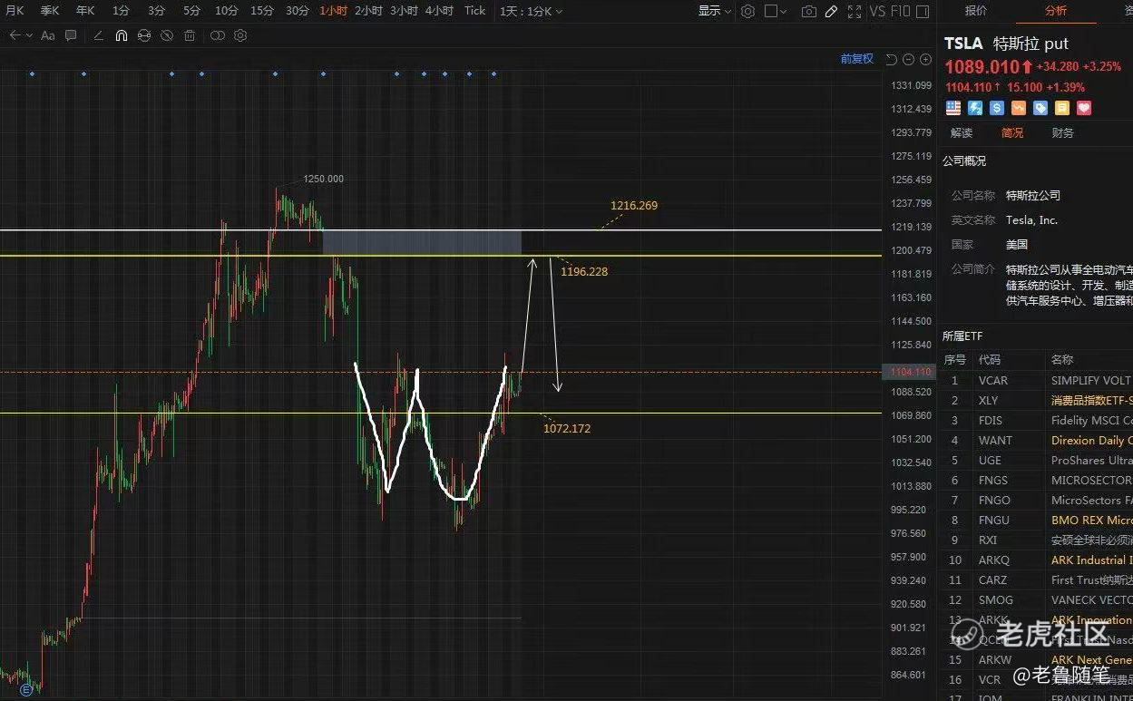 在2021年11月18日盘中的时候,我对特斯拉小时级别k线形态进行了分析,之前受到马斯克出售股票消息的影响,股价迅速下跌,截止到11月18日,股价走势基本成为双底形态,那么形态出来了,应该如何交易呢?