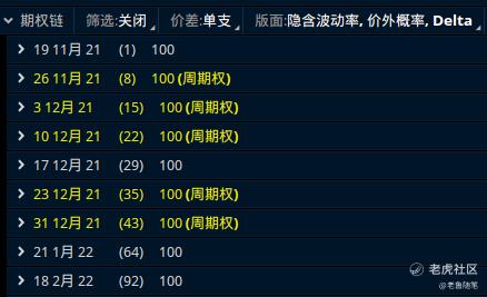 短期交易的话到期日我在这里就选择weekly 周期权,当然你选30-60天的期权也可以,但爆发性相对弱一些,看自己投资风险偏好了
