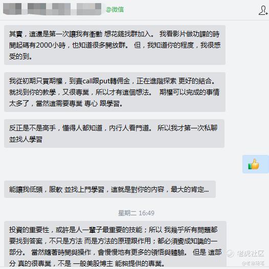 好了,今天的内容先讲这么多,后期的更新我尽可能在频率上加快一些,因为社群那边事情比较多,很多时候忙不开,所以还请各位没在社群内的朋友包涵一下,同样,如果您想学习更多的期权知识,可以关注我的公众号【老鲁随笔】,也欢迎加入我们的社群,不过我还是建议想来社群的朋友把我之前的内容都完整的看一遍,至少了解一下社群能给您提供什么样的价值,与您目前的需求是否匹配,如果不匹配,我相信我即使讲再多,基本也是无用之功。
