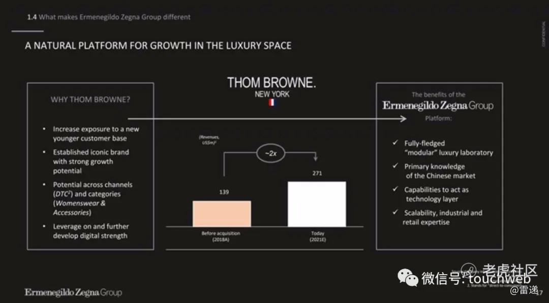 Zegna曾在2018年收购Thom Browne,以增强对年轻人的吸引力,并增加女装服务。