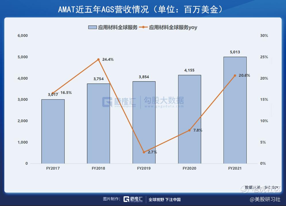 7、归功于领先优势、独特的产品和组合、产品的加速升级,AMAT将持续从提供解决方案中受益,AGS已成为占据公司营收 20%以上的重要部门,且已将很大一部分的AGS业务收入从按需服务转变为长期服务协议形式的订阅模式;