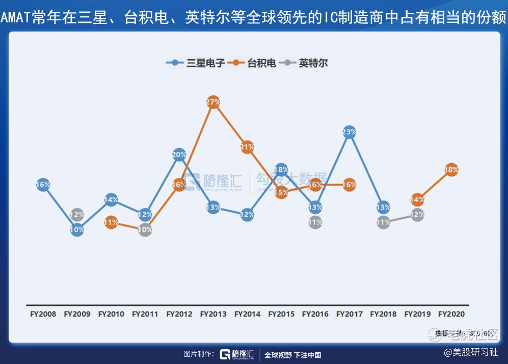3、作为全球平台型半导体设备龙头,AMAT致力于为客户提供从单体设备到解决方案的全品类服务,并通过持续高研发投入,保持行业领先地位,且常年在三星、台积电、英特尔等全球领先的IC制造商中占有相当的份额;