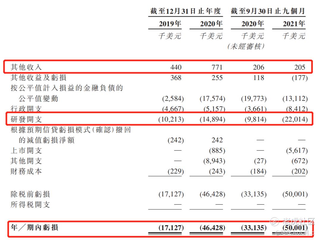 2019~2020年度净利分别为-1712万美元、-4642万美元,2021年前九个月净利为-5000万美元;