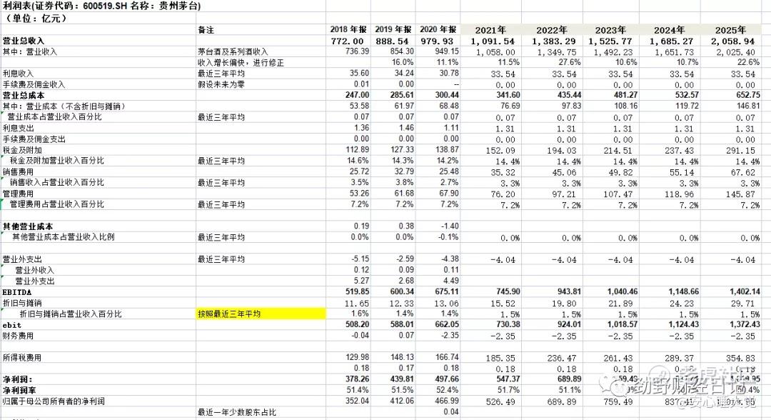 本篇目的很简单就是对茅台进行DCF估值,那么暂时不给出三张报表了。先给出相对准确的估值吧。