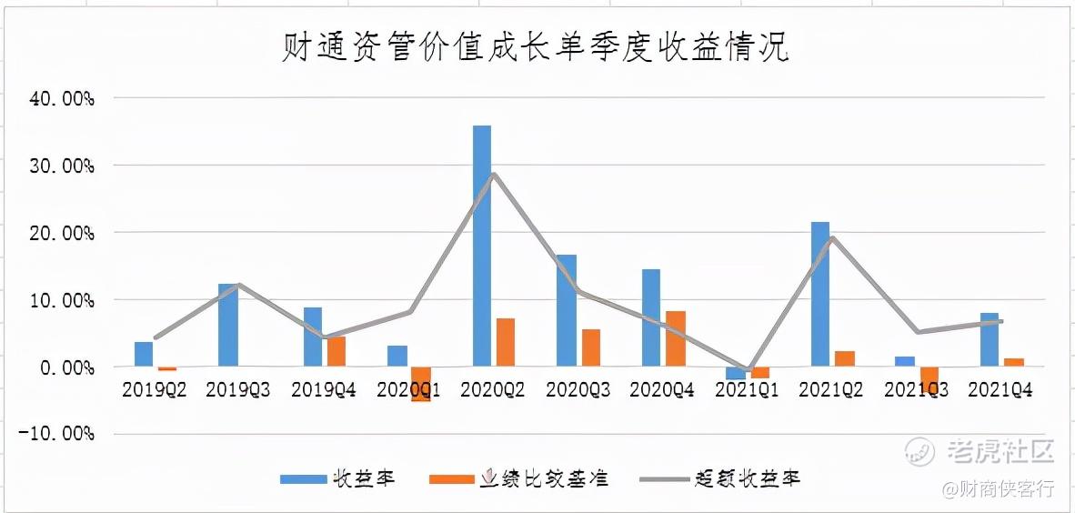 细化到季度来看,可以发现,财通资管价值成长过去11个季度中,有10个季度超额收益为正,只有2021年一季度市场大幅动荡的时候录得了负收益,也就是说,投资胜率超过90%。