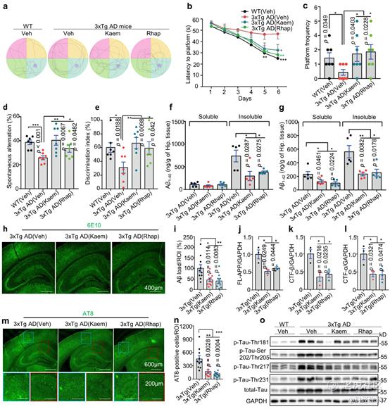 山奈酚和丹叶大黄素显著改善AD动物模型认知能力