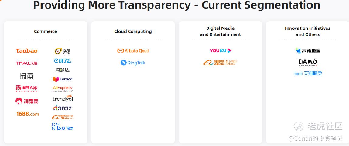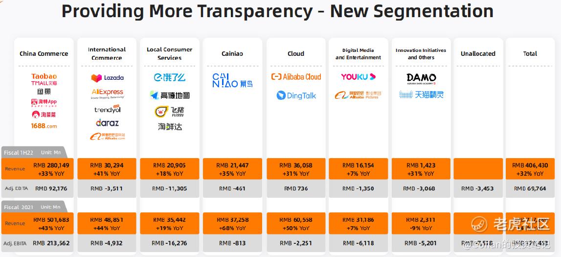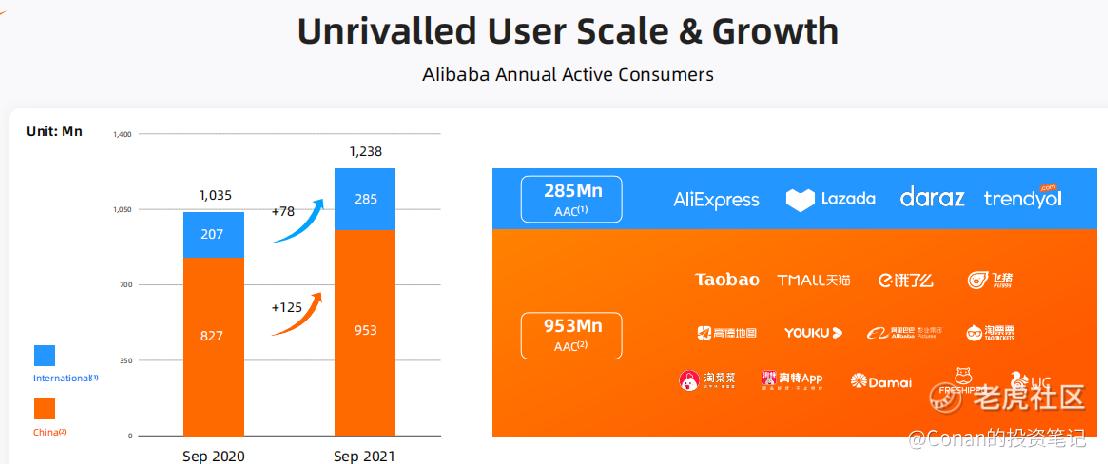 最近在参加了阿里巴巴投资者日(由于今年和去年有疫情,所以改网上了,略遗憾),基本是各个部门业务主负责人介绍和QA阿里各产品和业务线发展情况,最后是CEO和CFO交流和QA,多了解了一些阿里巴巴目前业务情况和发展规划,阿里一直是我非常关心的公司(很多朋友都知道我玩最多的游戏就是阿里巴巴的三国志战略版)。结合阿里巴巴$阿里巴巴-SW(09988)$ $阿里巴巴(BABA)$ 最新发布最新财报,很多数据是最新披露到2021年三季度为止,介绍一下阿里巴巴目前发展近况