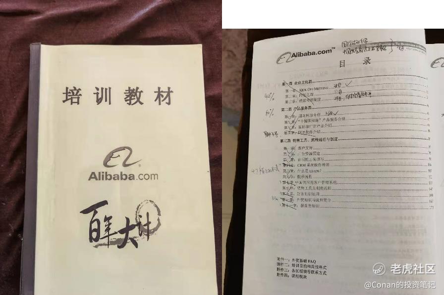 我同学在2008年进入阿里那时,阿里巴巴的培训材料,还有当时他做的很多笔记,他保留至今。