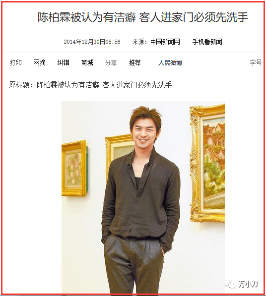 陈柏霖乐在其中,因为他自曝有洁癖,见不得家里脏,更见不得衣服脏。