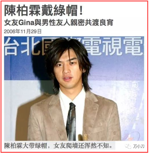 大约是在2006年,陈柏霖终于发现头顶的帽子变了色,他一开始隐忍不说,哪知女友变本加厉,完全不知悔改,陈柏霖恼羞成怒,只好忍痛放手。