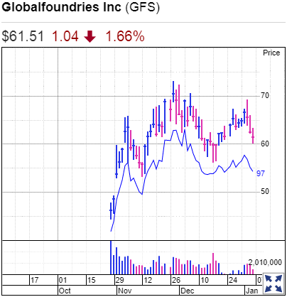 在半导体类股的重要一年里, Global Foundries于10月底进行了IPO,以每股47美元的发行价,筹资26亿美元。