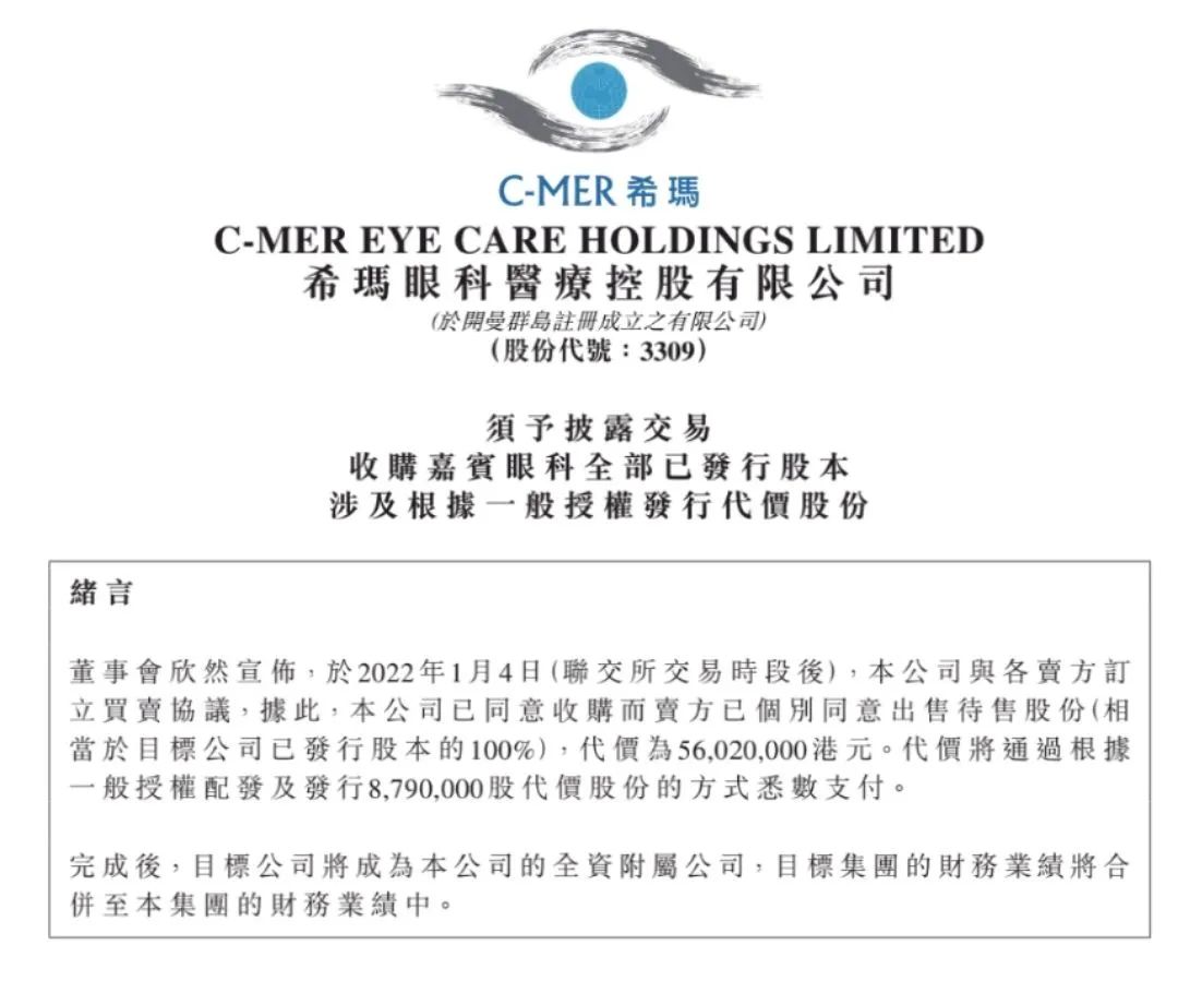新开局!希玛眼科收购香港嘉宾眼科,进一步巩固香港龙头地位