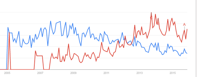 虽然两家都是定义为轻奢,但根据谷歌分析,用户对“coach (蔻驰)时尚”等关键词的搜索,远低于“Michael Kors时尚”,这也就意味着蔻驰相对于Michael Kors(MK),它的品牌地位在逐年下降。