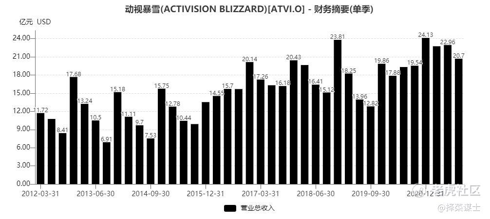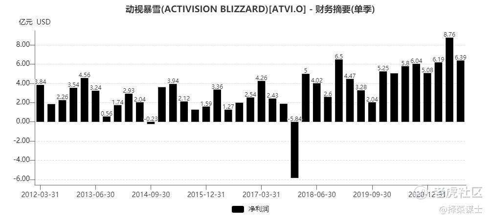 从暴雪的收入及净利润来看,2017年以来暴雪的单季度收入几乎陷入停止增长的状态,2020年疫情爆发以后,暴雪收入受益于居家隔离,同比改善,但是近几个季度伴随逐步恢复正常的生活,收入增速再度下滑,上个季度收入同比仅仅只有5.94%,股价也一路走低,尤其是去年7月份,公司曝出职场性别歧视与骚扰丑闻、多位高层管理者与高级设计师主动离职或被辞退、新游戏发布时间被推迟等负面消息困扰公司,股价大幅度下跌,距离高点下跌超过40%。