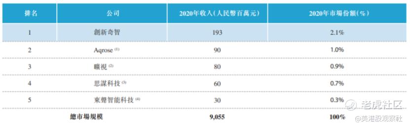 这期内容的主角,创新奇智在制造业的AI解决方案领域,正是市场第一,市场份额2.1%,根据2020年的财务数据,2020年来自制造业的收入为1.93亿元,是第二名的2倍以上。