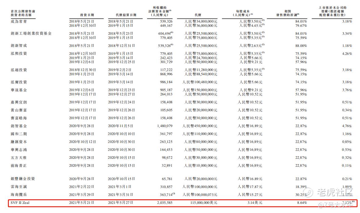 2021年5月,最后一轮融资软银以24.5港元价格入股,本次发行价溢价约7-11%。