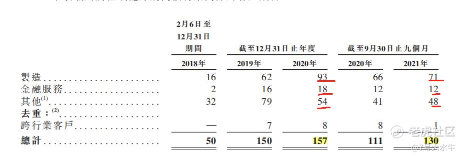 于2018年、2019年、2020年及截至2021年9月30日止九个月分别拥有:总计50名、150名、157名及130名客户。