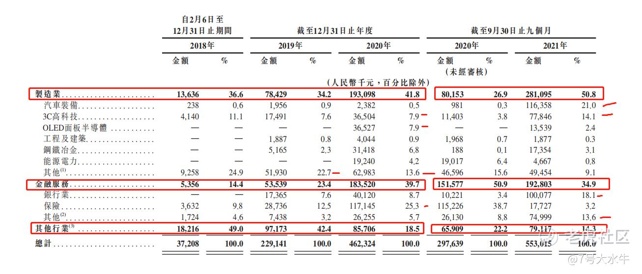 金融服务业客户数 由2018年的2名增至2020年的18名。