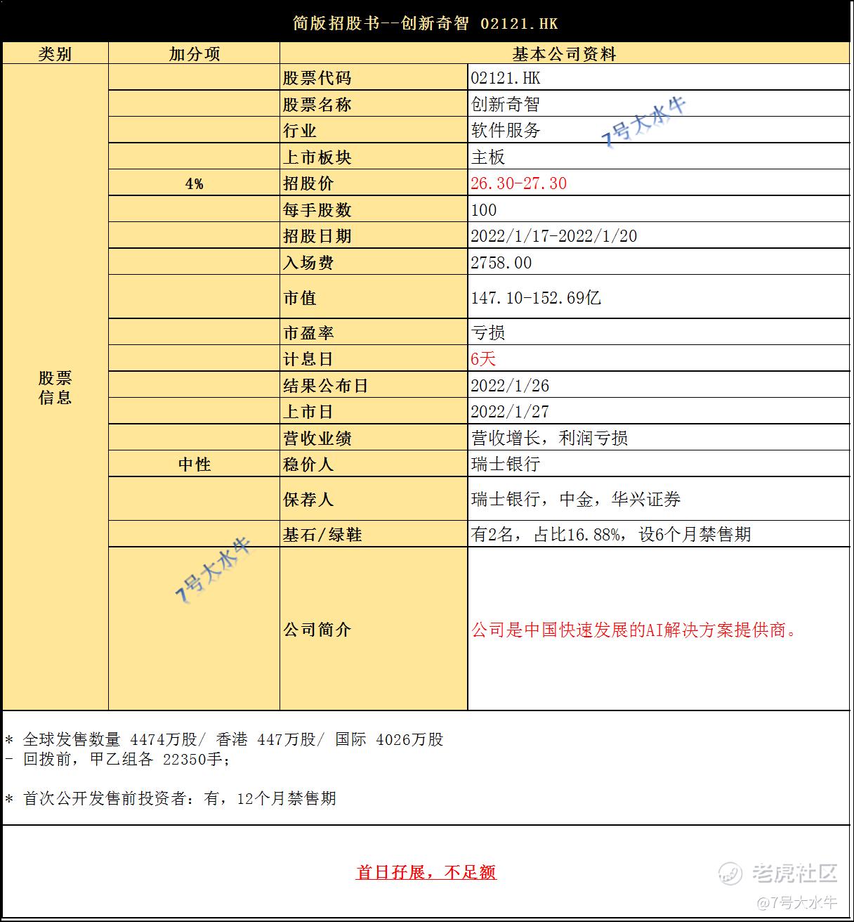 每股26.3-27.3港元,每手100股,入场费约2757.5港元,将于2022年1月27日上市。