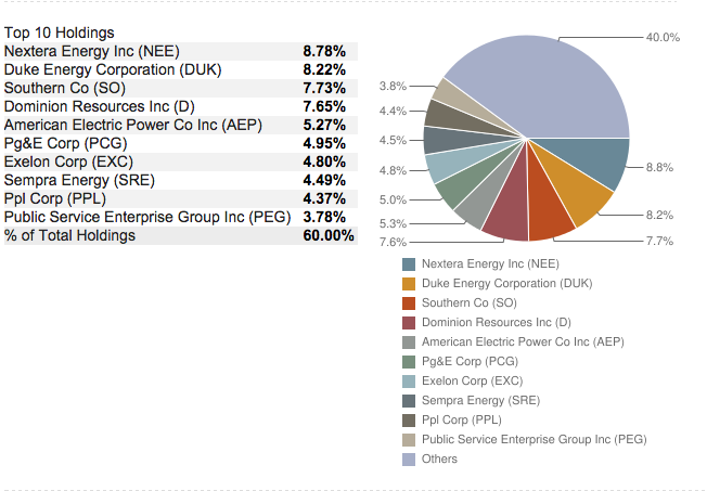 $(XLU)$公共事业指数 $公共事业指数ETF-SPDR主要包括从事生产运输或分销电力和天燃气的公司,标的如下图