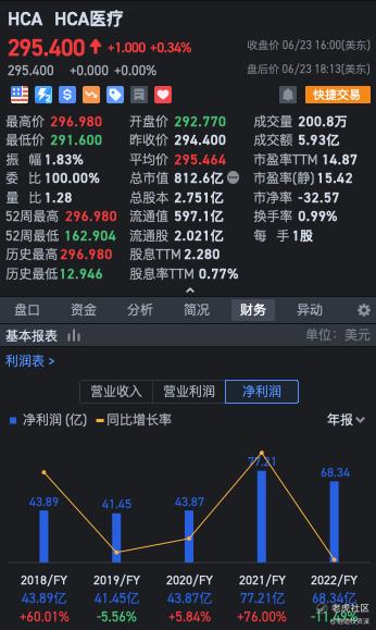 HCA医疗(HCA) 5年来营收持续增长,平均增速6.7%,营业利润连续增长4年在2021年达到顶点,2022年萎缩6.5%,5年平均增速8.4%,净利润5年中有3年增长,5年平均增速为20%,近4年平均增速11.7%。