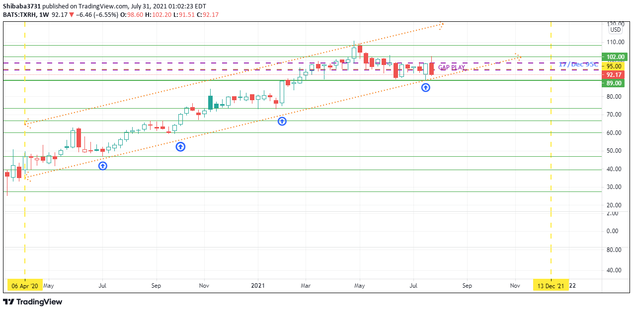 Next week, watch out for the $89 level which has been a support line for this uptrend. If it is broken, it could be the start of a down trend for $TXRH. If it held this support line, then 17/Dec $95C will be an attractive risk/reward play. Good luck!