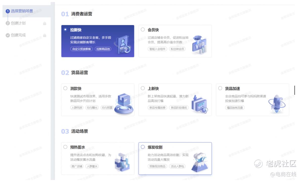 万相台要把经营经验变得更普适:尽管小商家并不像大商家们那样,有丰富的商品或品牌矩阵,手里捏着的市场预算也多,因此使用万相台的场景有限。但小商家能够通过场景的指引,了解到大商家是如何合理分配营销预算,并一步步从新品打爆、拉新、活动蓄水逐渐成长到下一阶段的。这是小商家逐渐走向专业化运作的过程。