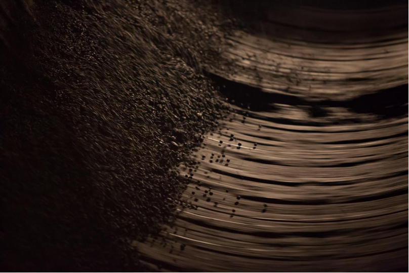 铁矿石的颗粒在机器中加工