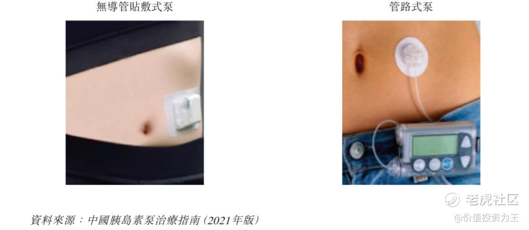 胰岛素泵进一步可以分为无导管贴敷式胰岛素泵和管路式胰岛素泵。下图说明贴敷式胰岛素泵和管路式胰岛素泵的作用方式: