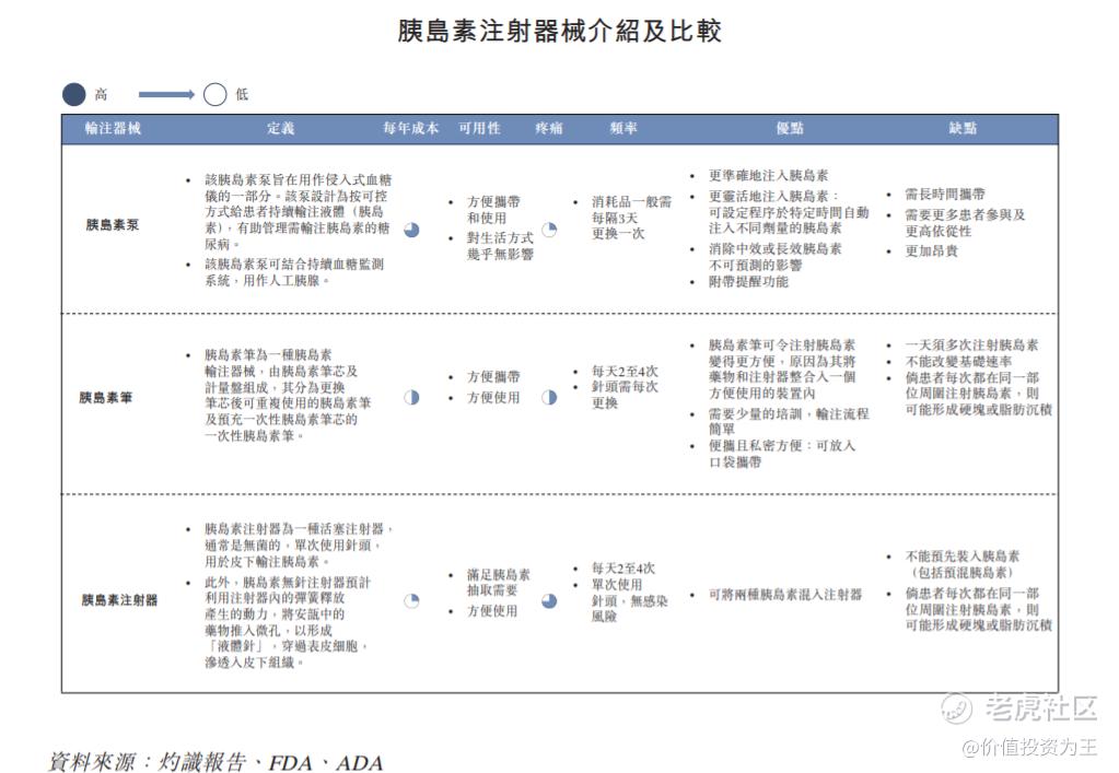 相比管路式泵,贴敷式泵使用更方便,单日使用成本更低,有望成为最主流的注射器械,下图是贴敷式泵和管路式泵的优劣势对比: