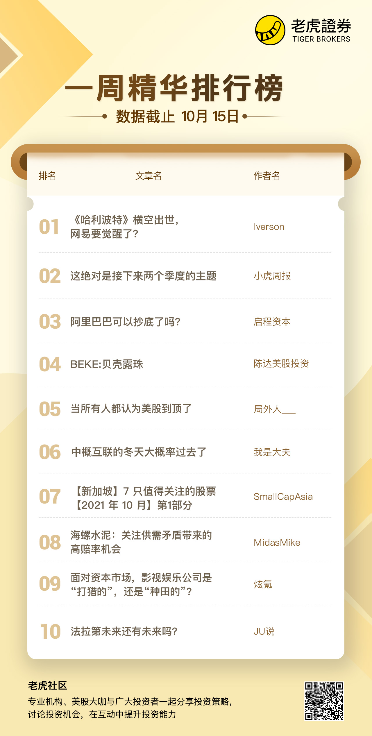“老虎周刊”精选老虎社区虎友们一周精华写作,希望对您的投资有所助力。