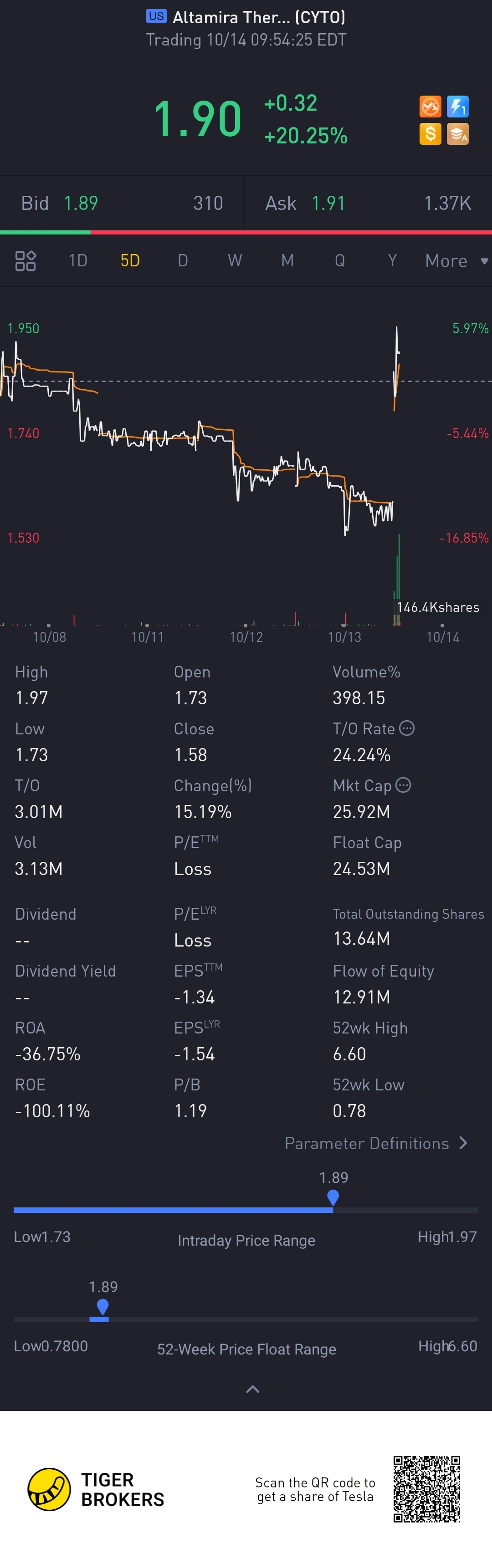 $Altamira Therapeutics Ltd.(CYTO)$20% increase 👍🏻👍🏻📈📈