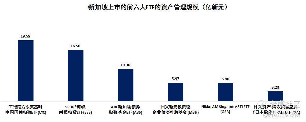 新加坡上市的前六大ETF的资产管理规模如下图所示(不包括2021年第三季度流入)。