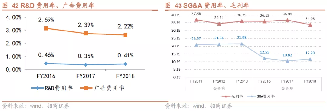 R&D、广告、SG&A 三项费用率齐降。在3G资本的大幅压缩成本下,研发费用、广告费用、销售行政及一般费用均呈现下降趋势,从2016年-2018年来看,R&D 支出从1.2亿美元下降到1.09亿美元; 广告支出从7.08亿美元下降到5.84亿美元; SG&A支出从35.27亿美元下降到32.05亿美元。