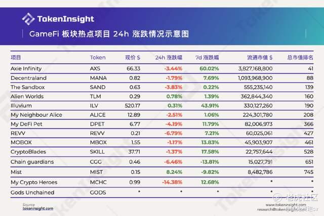 根据TokenInsight的数据,当前官网总计收录GameFi板块项目14个,总流通市值为$6,627,850,382,约为数字资产市场总值的0.33%。TokenInsight曾顺势调侃道:“大家都知道GameFi火热,但实际上,GameFi与主流之间还隔着一个孙割的波场。”