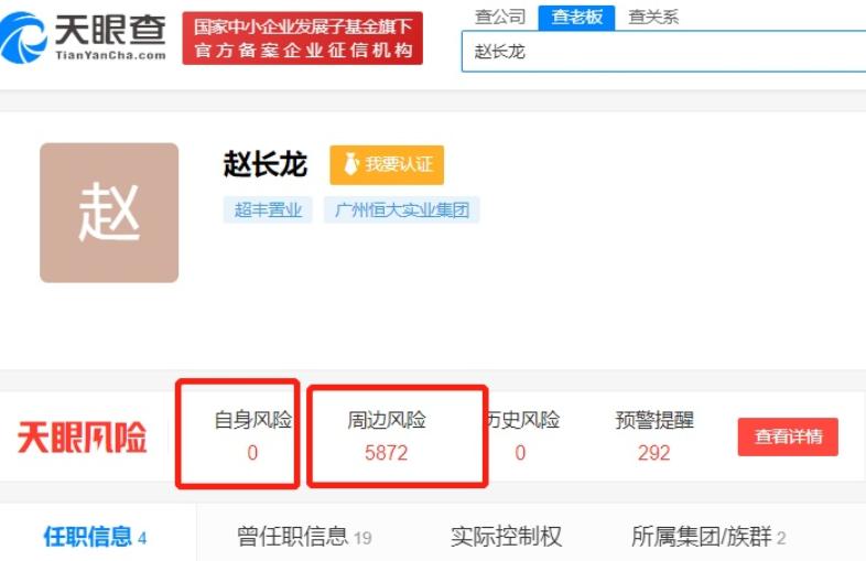 据天眼查表示,赵长龙 涉及周边风险高达5872条: